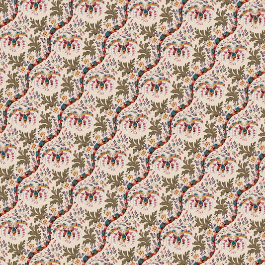 By the mid-1700s, Europe — especially England and France — was swept up in the calico craze. Advances in dye chemistry and mechanization made it possible to mass-produce richly patterned cottons featuring florals, exotic scenes, and geometric repeats once seen only in Indian imports.