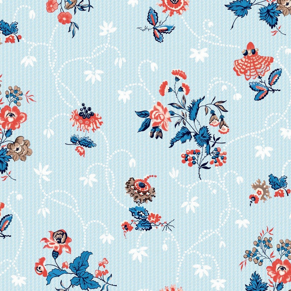 This delicate floral design originates from Skokloster Castle in Sweden, where the original fabric adorns both canopy curtains and upholstered chairs. The pattern reflects the refined elegance of mid-18th-century French indienne cottons, later imported and cherished in Nordic interiors.