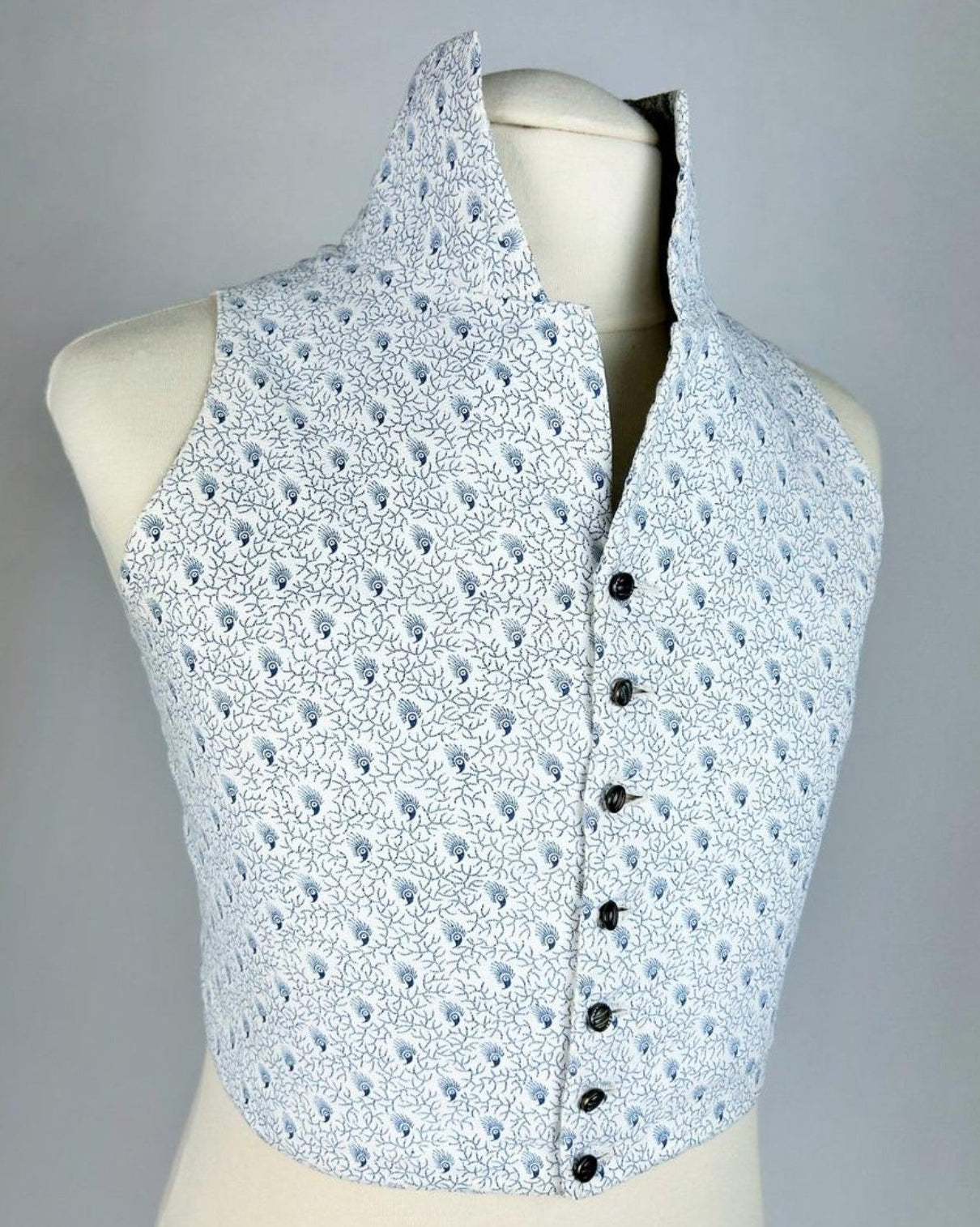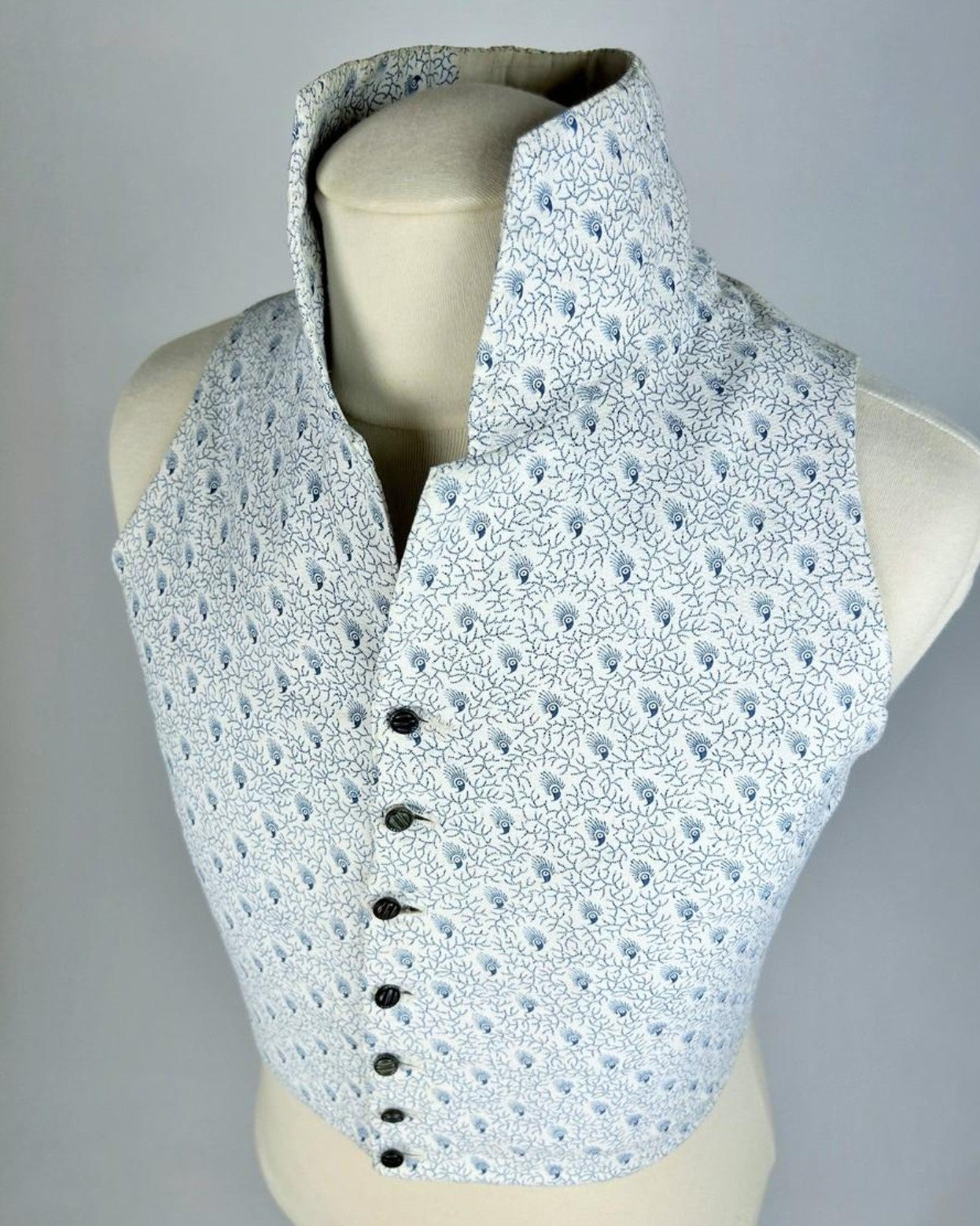 The fabric is ideal for a tailored waistcoat: crisp enough for structure, soft enough for comfort, and visually aligned with original copper-plate and roller-printed cottons. Cut, shape and finish the garment to your own measurements while keeping the authentic silhouette.