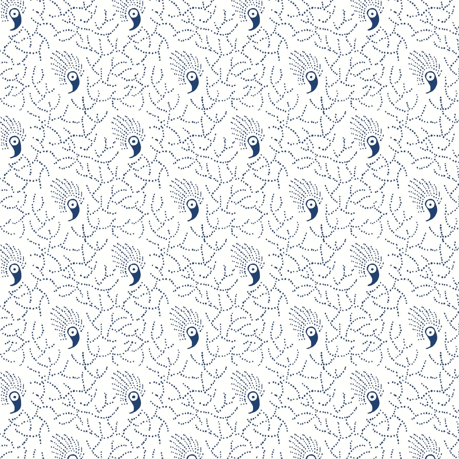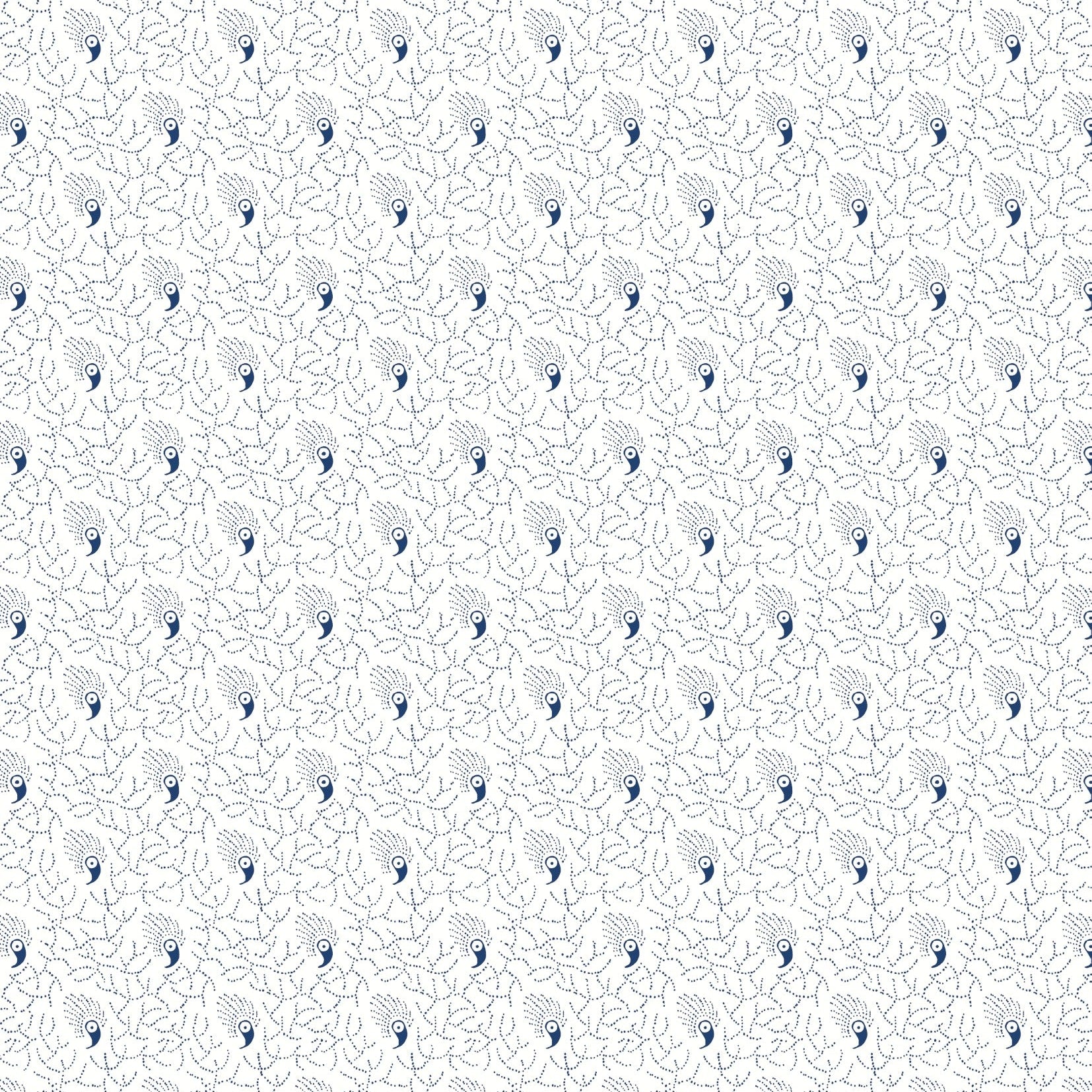 The pattern is based on French menswear textiles from around 1800–1807 and mirrors the clean, elegant look seen in early Empire waistcoats. The fine blue motifs create the same light, summery expression typical of the period.