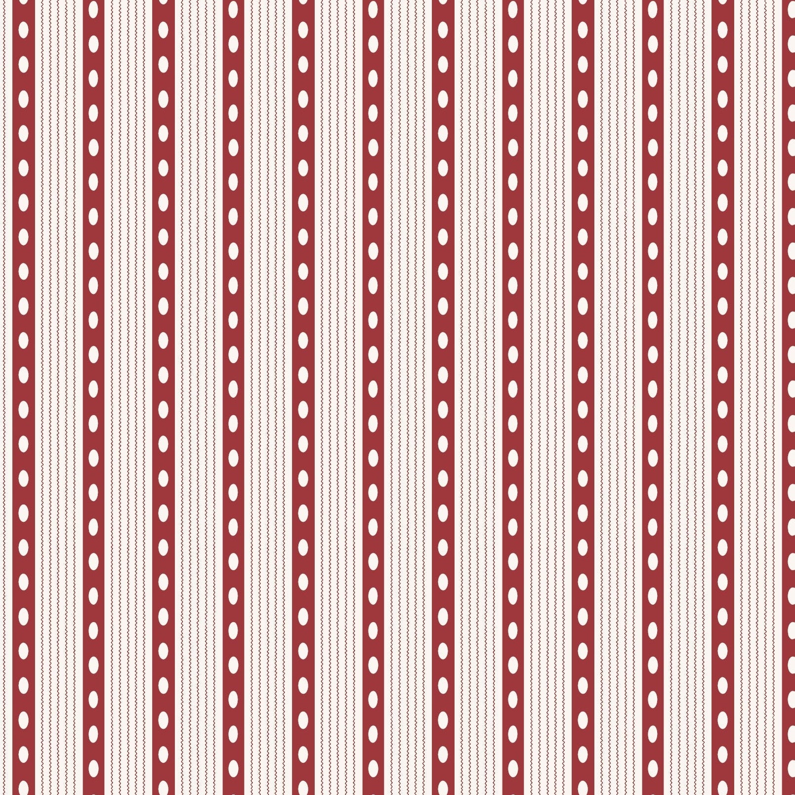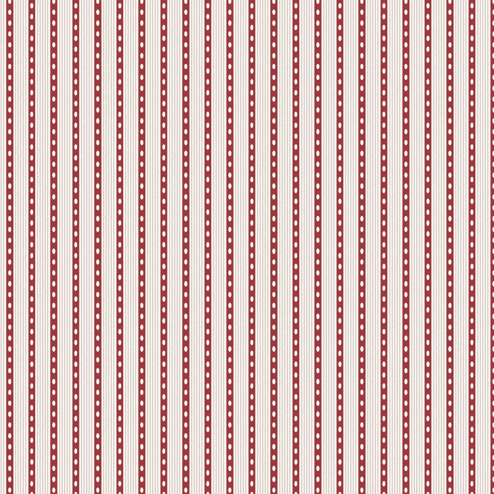 This cheerful striped cotton is inspired by seaside fashions of the late 1870s, when bold lines and playful contrasts became a hallmark of summer attire. The soft cream ground combined with blue and rose-red stripes recalls dresses worn for promenade and leisure along the coast—elegant, practical, and distinctly Victorian.