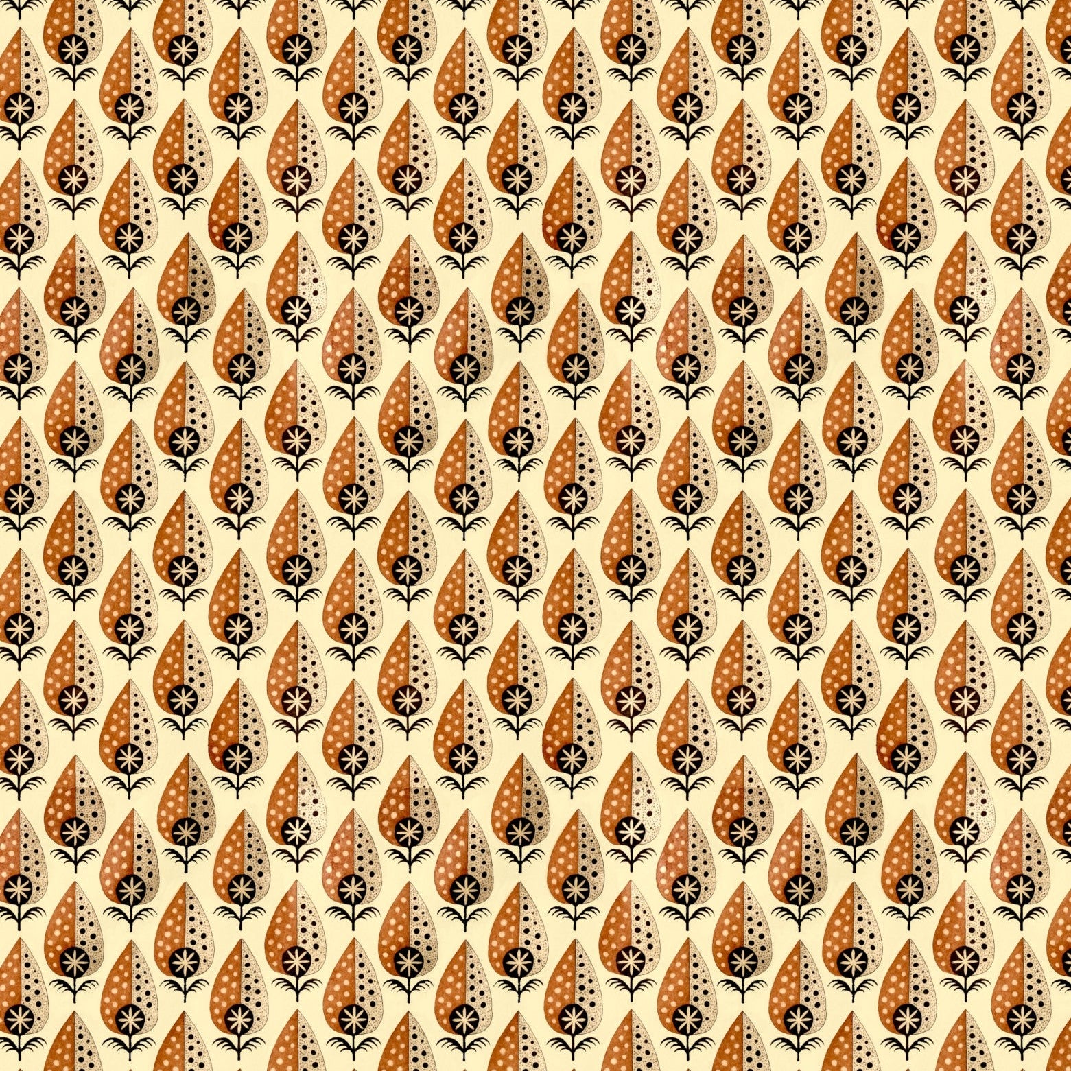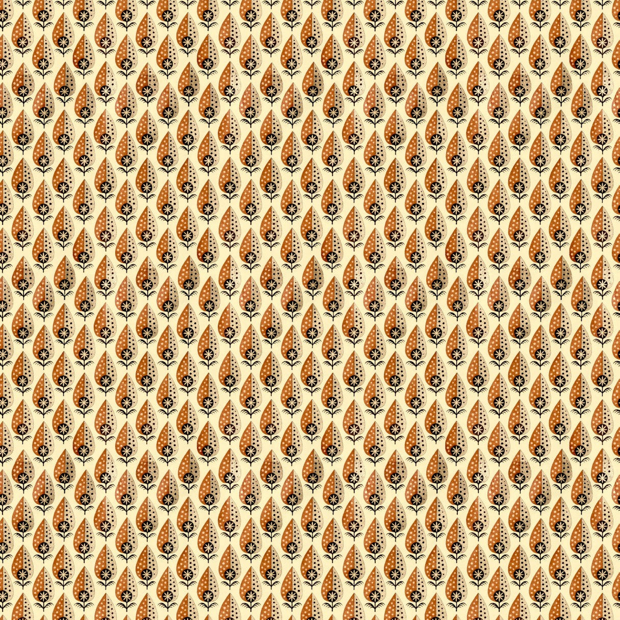 Inspired by an original 1820s Spencer fabric discovered on a historical auction site. This cream cotton print features a stylised pattern of tobacco-brown and black lanceolate leaves with small dotted and floral details. Perfect for recreating Regency outerwear such as spencers, waistcoats or accessories.